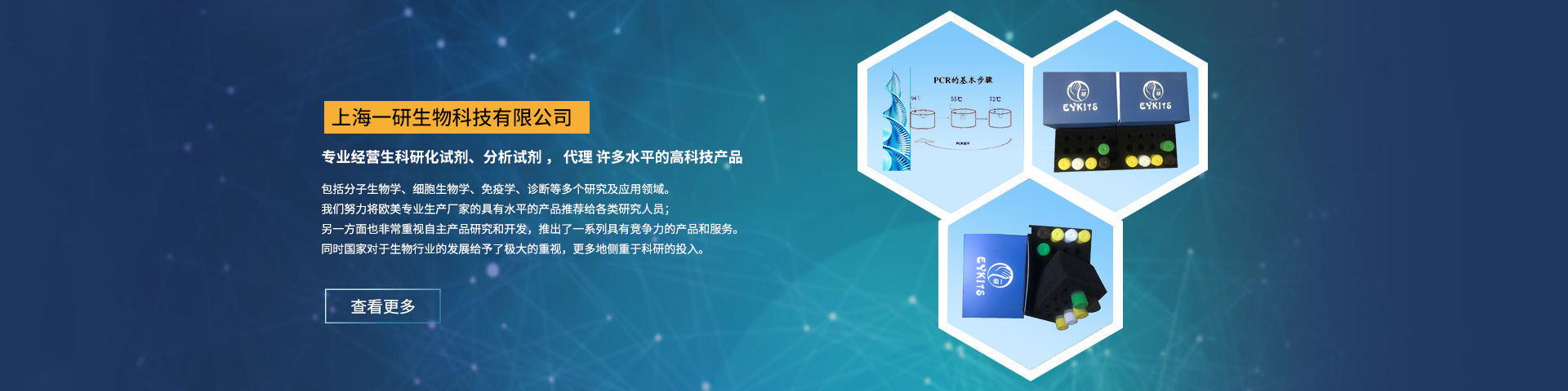 上海一研生物科技有限公司Shanghaiyiyanbio-technologyCo.Ltd.主要從事免疫學、分子生物學和常規(guī)生化試劑等為一體的科研產(chǎn)品銷售企業(yè),公司自成立以來,秉承"全心全意服務(wù)于科研工作者"的企業(yè)理念,立足生物科技領(lǐng)域,運用生物技術(shù)和科研試劑,發(fā)展現(xiàn)代生物科技,為各類大中小醫(yī)院及其它醫(yī)療機構(gòu)、高等院校、科研院所、企事業(yè)單位提供優(yōu)質(zhì)的產(chǎn)品,服務(wù)生物科技領(lǐng)域的科學研究人員。公司具有對...